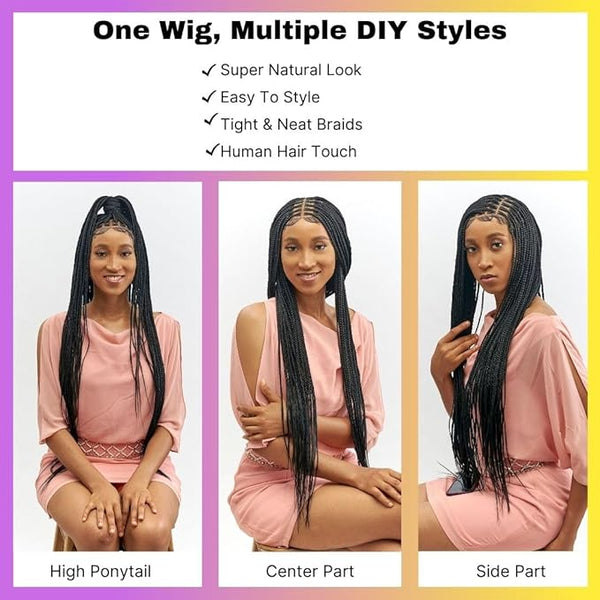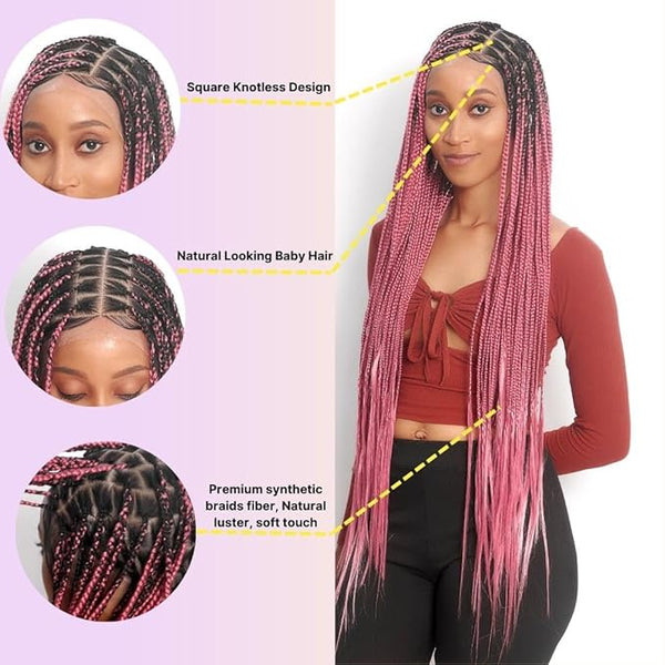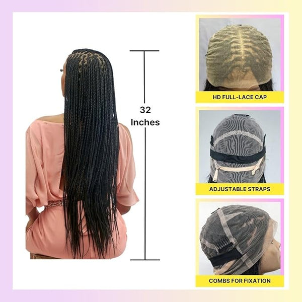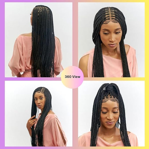 36" LARGE KNOTLESS BRAID WIG ON FULL 360 HD LACE CAP WITH BABY HAIR
