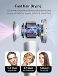 The fast hair dryer comes with a magnetic nozzle that can be freely rotated a full 360-degrees. The convenient magnetic design makes it easy to use and detach.
