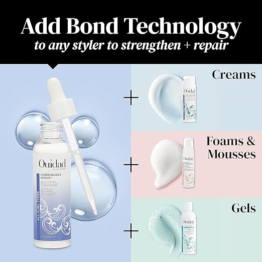 The Unbreakable Bonds Collection includes Bond Building Shampoo and Conditioner, as well as our Mixing Drops.