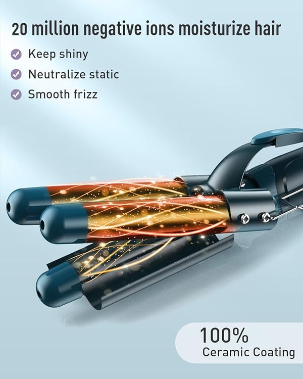 GROUND-BREAKING BARREL DESIGN: The three large ceramic barrels of our hair waver iron ensure your hair is given a natural-looking wave. The chunky size of the 3 barrel crimper hair iron means it can get through the hair quickly, taking just a few minutes to style all of the hair.