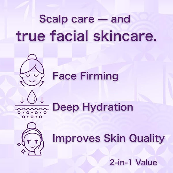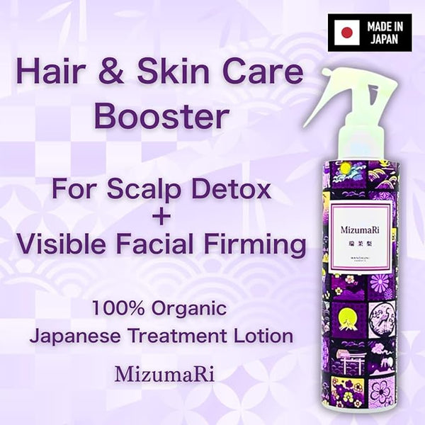 MizumaRi Scalp & Face Lotion is a dual-purpose antioxidant formula designed for both hair and skin. On the scalp, it helps support fuller-looking hair by cleansing buildup, refreshing the scalp, and helping the roots feel stronger. On the face, it helps improve the appearance of firmness, hydration, and smoothness. Because it¡¯s 100% organic and free from preservatives, it¡¯s gentle enough for sensitive skin.