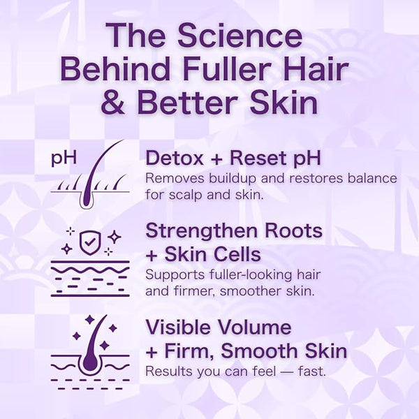 MizumaRi works by neutralizing oxidation at the cellular level with its patented antioxidant ingredients. It helps restore balance in both scalp and skin: