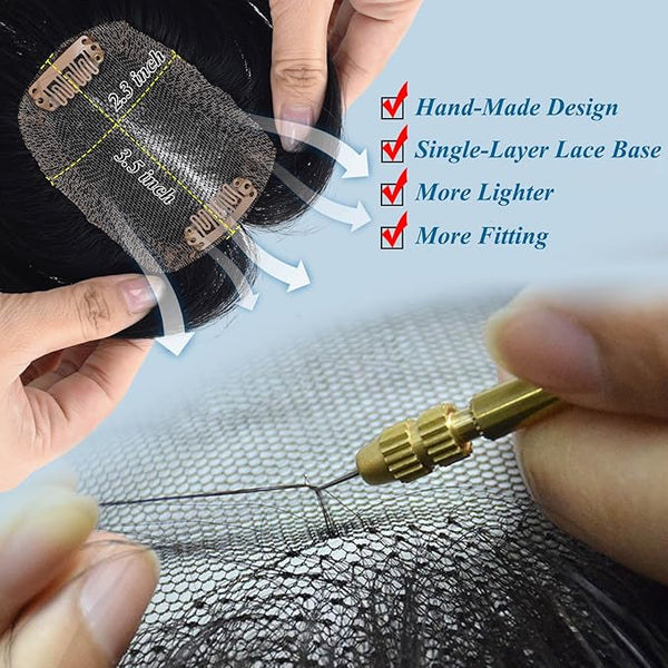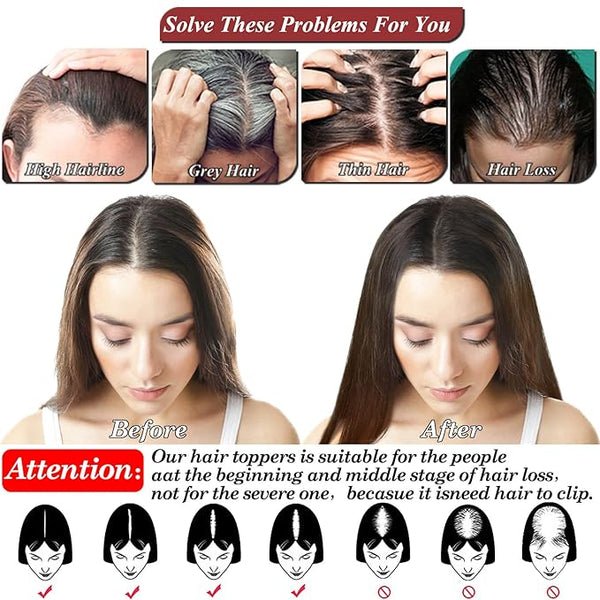 Product descriptionHair Topper Specification:Why Choose Clip in Hair Toppers?How to Distinguish Between Real Hair & Synthetic WigsHair topper Material: 100% Real Human HairHair Topper Base Size: Advanced handmade lace breathable...