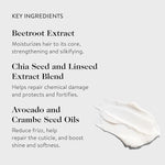 It strengthens and protects hair against environmental stressors (heat styling, hair color, sun, chlorine, or even tight ponytails).