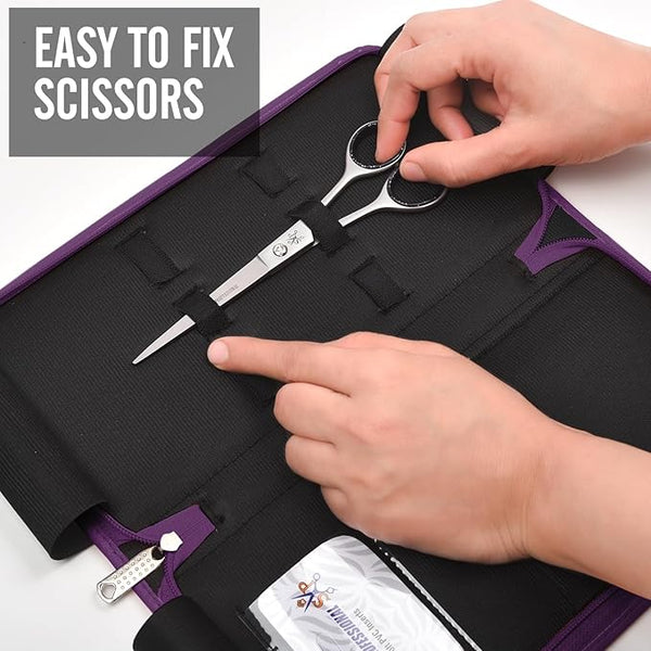 Experience the ultimate in protection and style with this premium shears case. Crafted from non-scratch fabrics, it keeps your hair cutting shears looking pristine while offering secure storage. Perfect for professionals demanding the best in both elegance and functionality.