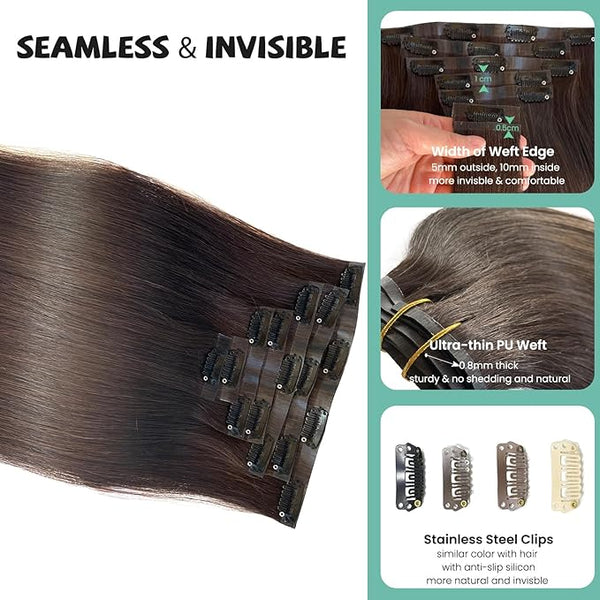Ubetta Seamless Clip in Hair Extensions Human Hair