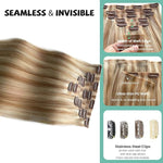 The seamless clip in hair extensions human hair is designed for ladies who want to use more seamless and invisible hair extensions.