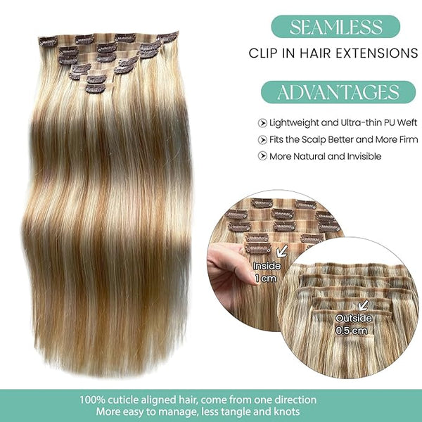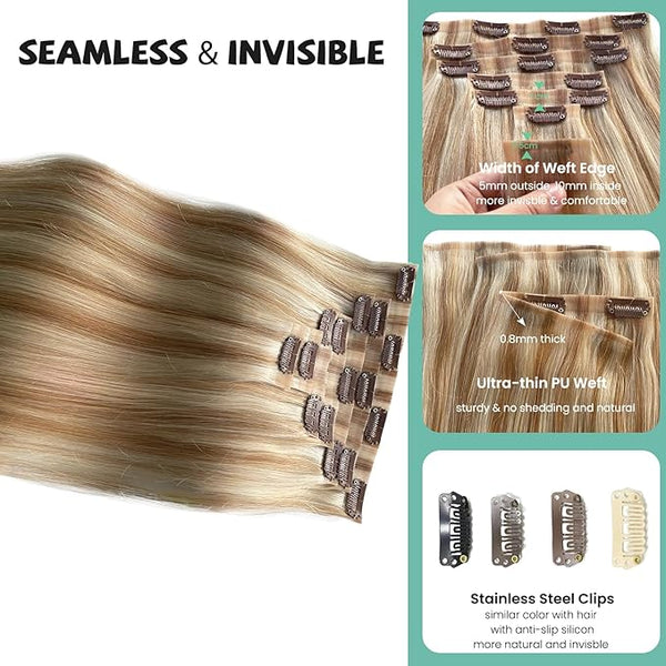 Ubetta Seamless Clip in Hair Extensions Human Hair