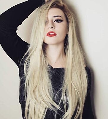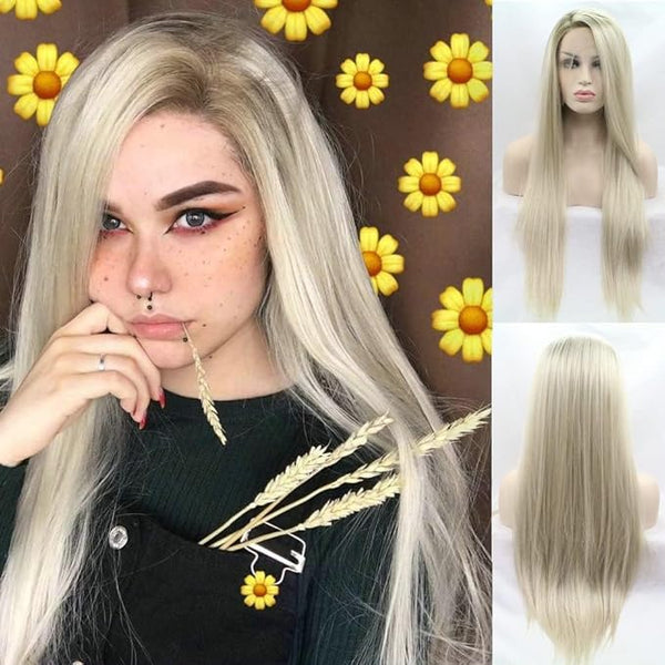 Product descriptionOmbre Blonde Synthetic Lace Front WigLong Natural Straight Synthetic Lace Front Wigs