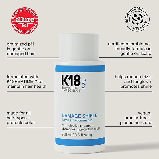 Product descriptionK18 Damage Shield ShampooIs the formula of the DAMAGE SHIELD pH protective shampoo different from the PEPTIDE PREP pH maintenance shampoo?What makes the DAMAGE SHIELD pH protective shampoo special?When...