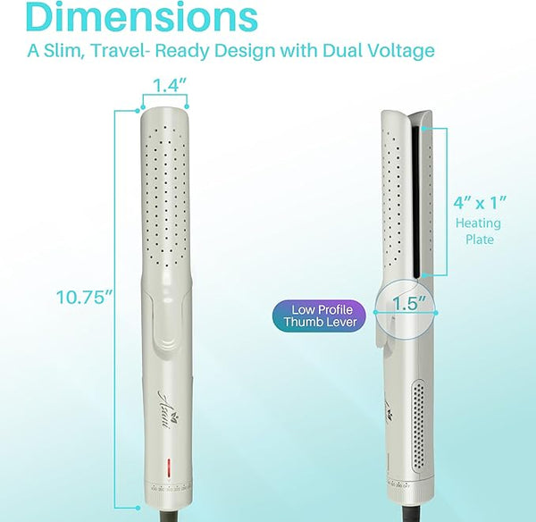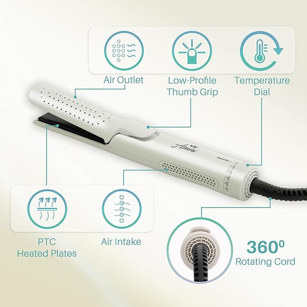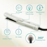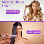 Gorgeous hair volume. Waves that invite compliments. Curls that captivate attention till the day's end ? that¡¯s what our innovative 2-in-1 hair crimper is all about. This multifunctional Flat Iron Hair Straightener breaks free from conventional limits, empowering you to effortlessly craft an array of unique looks. The integrated cooling fan and 360¡Æ vented airflow ensure a swift and secure fixation of your desired style, allowing for instant hair setting. Its skillfully designed rounded titanium plates enable the creation of both curls and waves, giving you the power to redefine your look with unmatched precision.