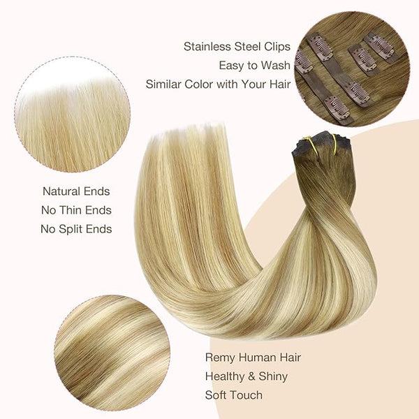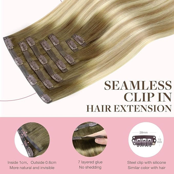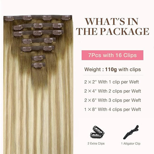 Product description100% REAL HUMAN HAIRSeamless Clip insTypeSeamless clip ins14-22 inchLength14-22 inch110g with clipsWeight130-150g with clips7 PiecesPieces7 PiecesSeamless Clip insTypeClassic clip ins14-22 inchLength12-24 inch110g with clipsWeight85-120g with clips7 PiecesPieces7 PiecesHair Extension...