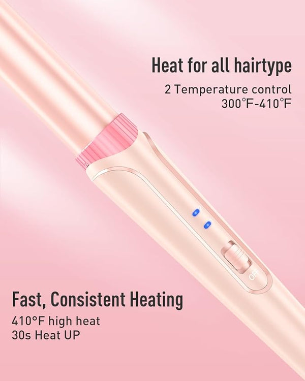 EASY FOR BEGINNERS: With a nonslip handle and a long 360¡Æ swivel power cord, our interchangeable curling wand set is convenient for novice users. Choose from 2 temperature settings, to give a loose or defined pleat to your hair.