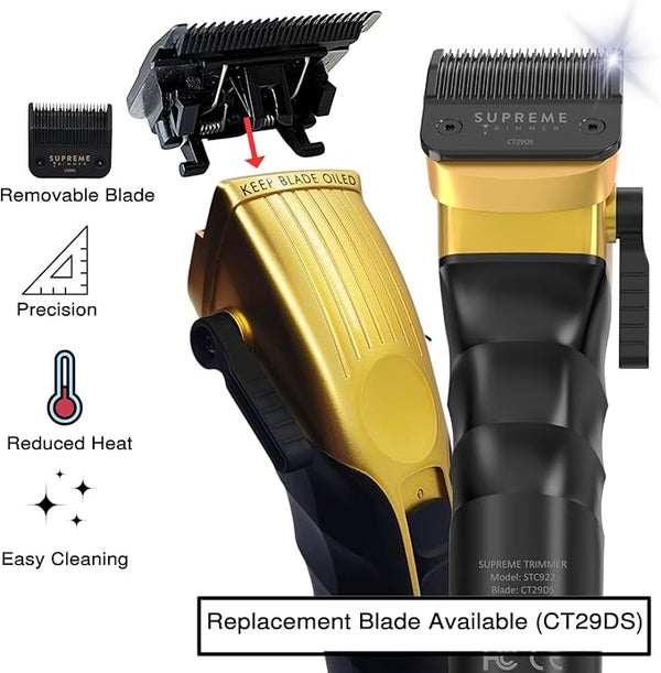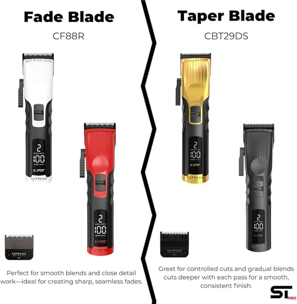 2SPEE Clipper is equipped with a Detachable Taper Blade CT29DS Blades, which seek to cut straight lines & can be used for de-bulking. Our cordless hair clipper includes everything you need for a user-friendly head, beard, mustache and all hair types trim.