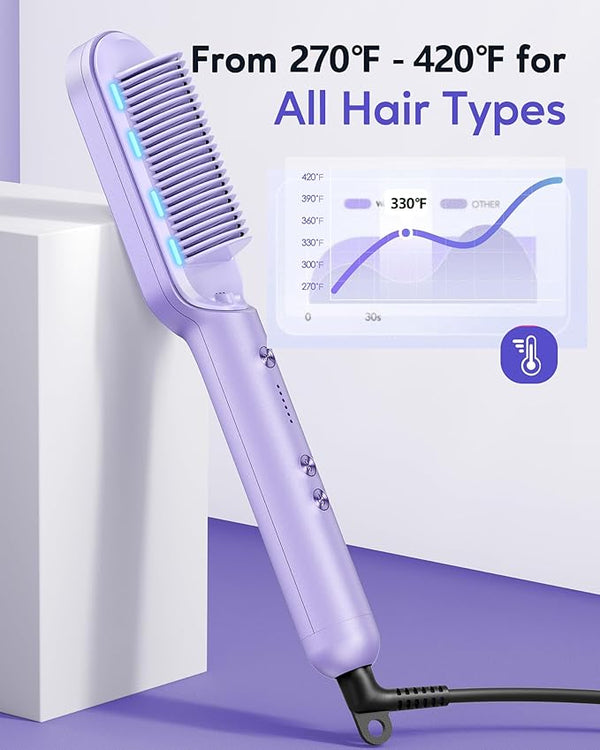 This straightening comb's temperature range is 270¢µ to 420¢µ, recommended for hair types 2A to 4A, best for hair lengths below the shoulders. The curlier the hair, the more time and passes may be needed for straightening.