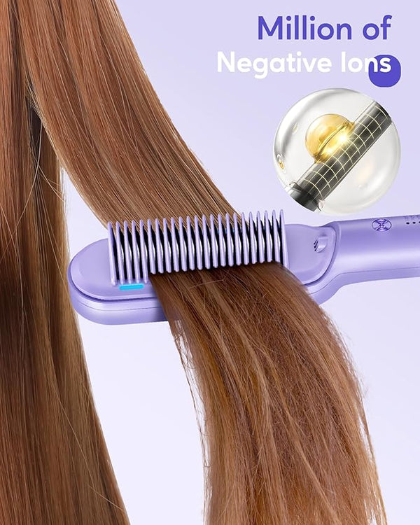 For best results, you have to select the right temperature for your hair type, ensuring insert one hair section into comb heater, slowly straighten hair from root to tip; for rough or frizzy hair, make more passes to achieve the desired straightness