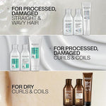 Introducing Acidic Bonding Curls, Redken's first silicone-free bonding range to restore the pattern of processed damaged curls and coils. This haircare collection helps repair curl strength from chemical processes like bleaching and permanent color services, as well as heat styling. Our silicone-free, sulfate-free shampoo and conditioner help gently cleanse and provide hydration to curly hair. The leave-in treatment helps detangle, and smooth hair while providing heat protection up to 450¡ÆF.