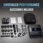 In working the world's best professionals, we have designed a mens clipper and trimmer that is limitless. With 10 clipper guards, 4 trimmer guards, barber cape, blade oil and storage case, your ability to create is truly without limitation.