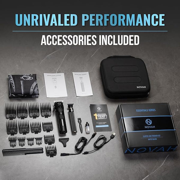 Product descriptionWhat's Included in Our Novah Essentials SeriesDiscover Other NOVAH Products:Our wireless hair clippers and trimmer for men are constructed of an all metal unibody for a luxury look, feel...