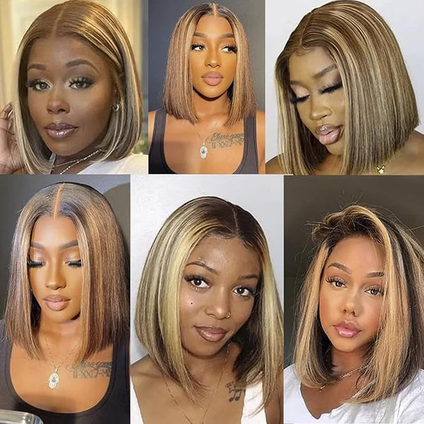 Hair Color: Human hair wig ombre honey blonde color can be dyed.