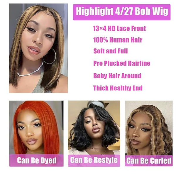 3.Bob wig human hair 13x4 frontal lace wig,100% high quality Brazilian Virgin Human Hair, which is easy to straighten, bleach, perm and dye,You will not only receive high quality hair, but also receive a beautiful gift.