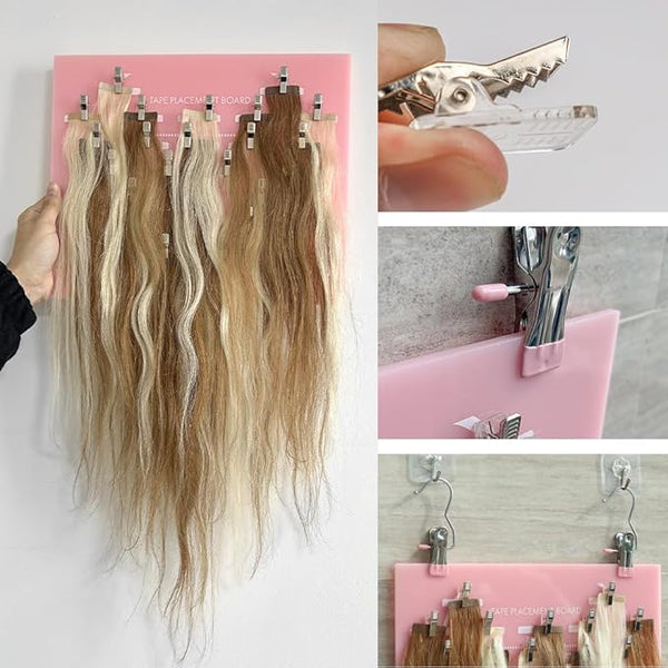This tape in placement board has a large storage space that can accommodate up to 25 hair extensions, making it easy to organize and access.