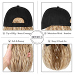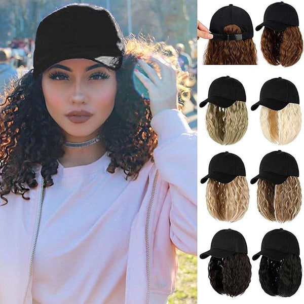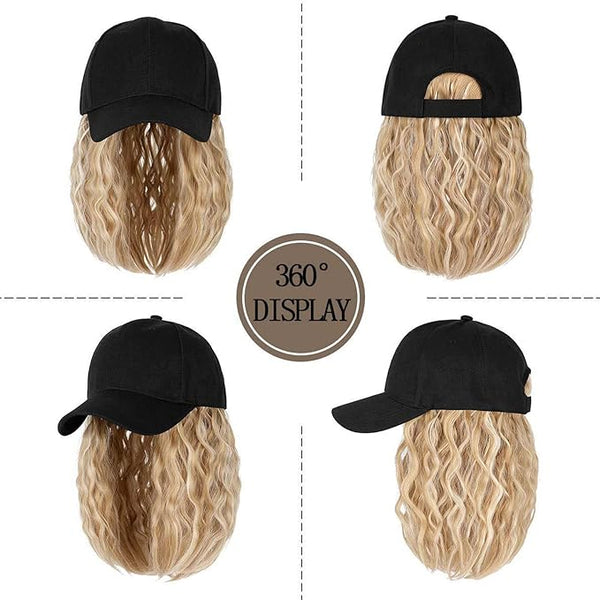 Woman Baseball Cap with Hair Extensions Straight Short Bob Hairstyle Adjustable Wig Hat