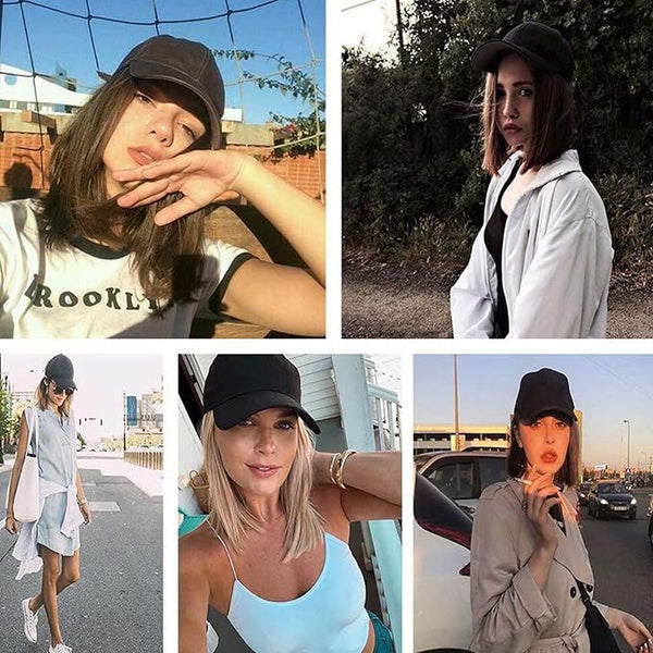 Woman Baseball Cap with Hair Extensions Straight Short Bob Hairstyle Adjustable Wig Hat