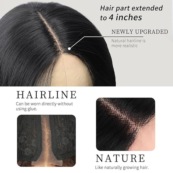 This dark Brown wig can be worn with a middle part or a side part to unlock more hairstyles