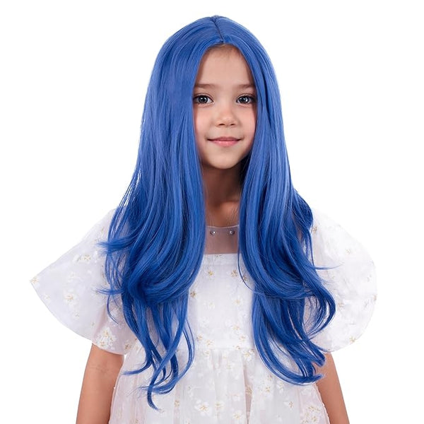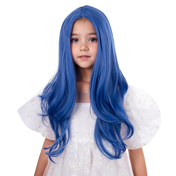Edivd Long Dark Blue Wavy Middle Part Wig