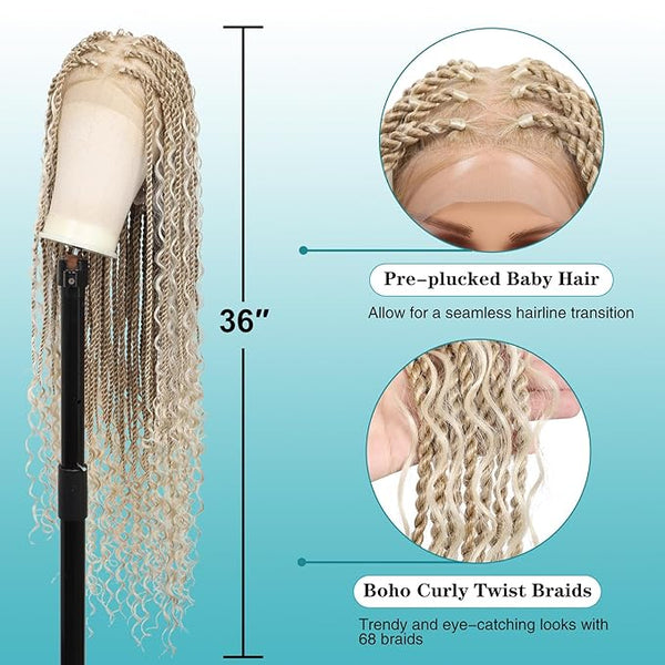 Kalyss 36" Full HD Lace Knotless Braided Wigs with Triangle Part