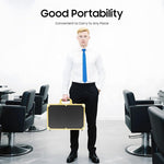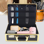 Are you still worried about the hairdressing tools that are lying around everywhere? Our hairdressing case can solve your worries. It is made of high-class fireproof board and metal through the electroplating process, which is sturdy and durable. The shoulder strap and large capacity make it a good helper when you go out. The lock ensures high security and gives you a high level of peace of mind. All in all, it is an ideal assistant for storing all kinds of hair or makeup tools! Come and bring it home!