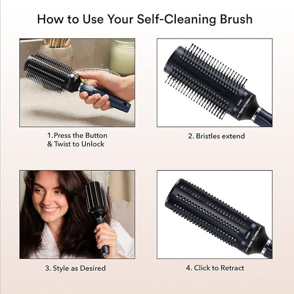 This self cleaning hair brush effortlessly removes trapped hair and debris, leaving your brush clean and ready for the next use. Say goodbye to manual cleaning and hello to tangle-free, beautifully styled hair with our bounce curl brush for women.