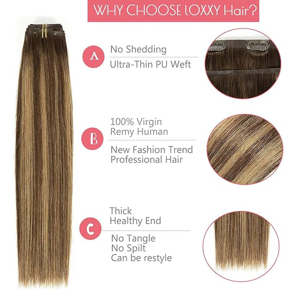 Loxxy Seamless Real Hair Extensions Clip in Human Hair