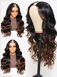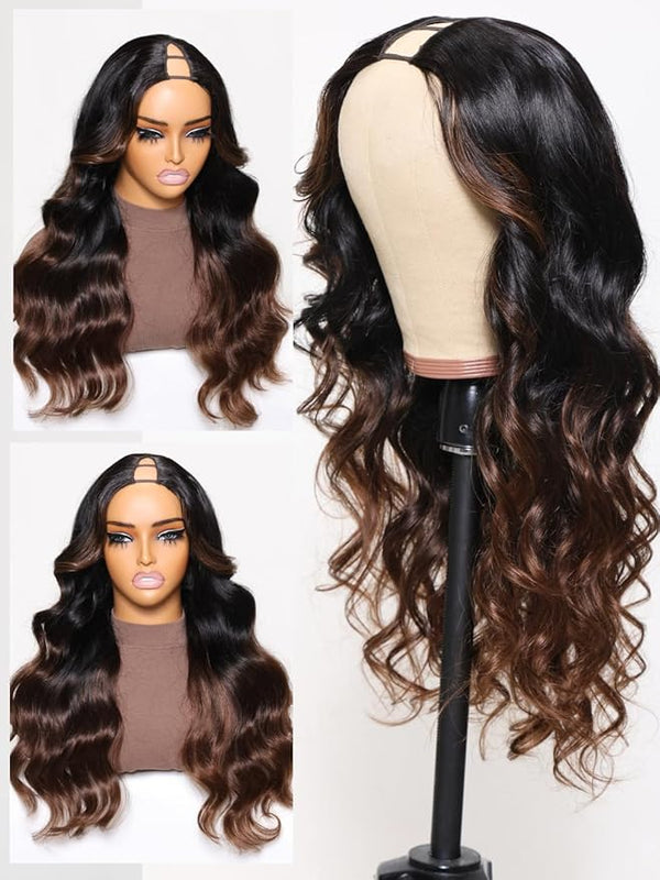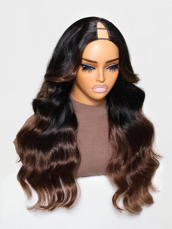 Ombre Chestnut Brown Body Wave Vpart Wig No Glue No Sew in