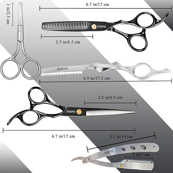 With a length of 6 inches, and safe smooth blade top design. Fozirut haircut scissors is safe and easy to use on men, women, the elderly, children, and dogs! With a sleek stainless-steel texture, our scissor reduces messy hair clutters as no hair gets caught in between its thinning blades, unlike other hair thinning scissors on the market.