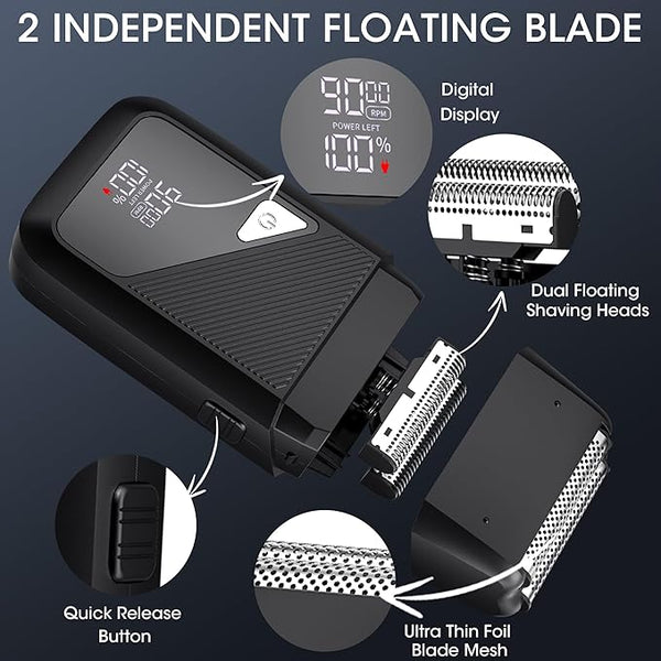 Intelligent double floating shaving head withaluminum foil blade mesh.