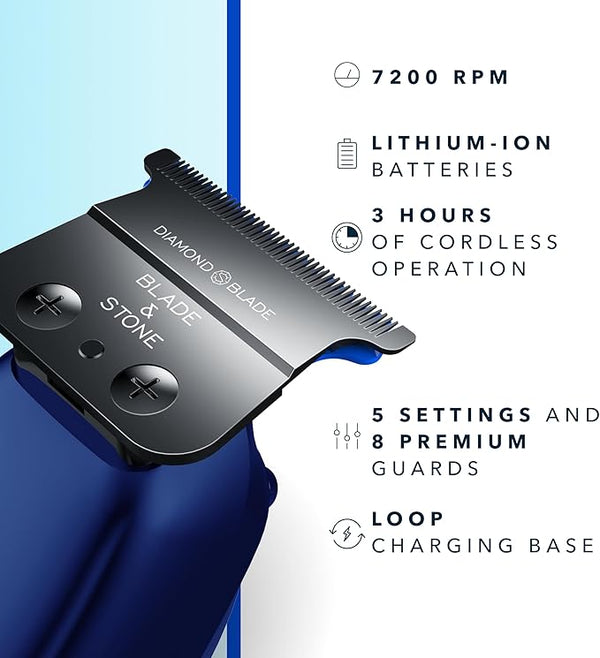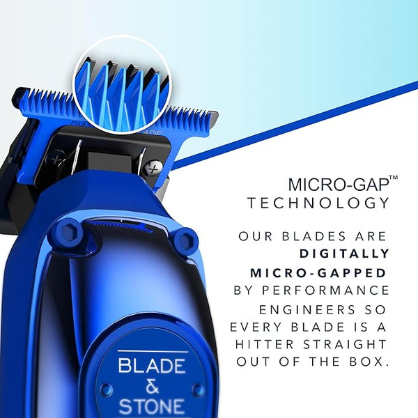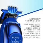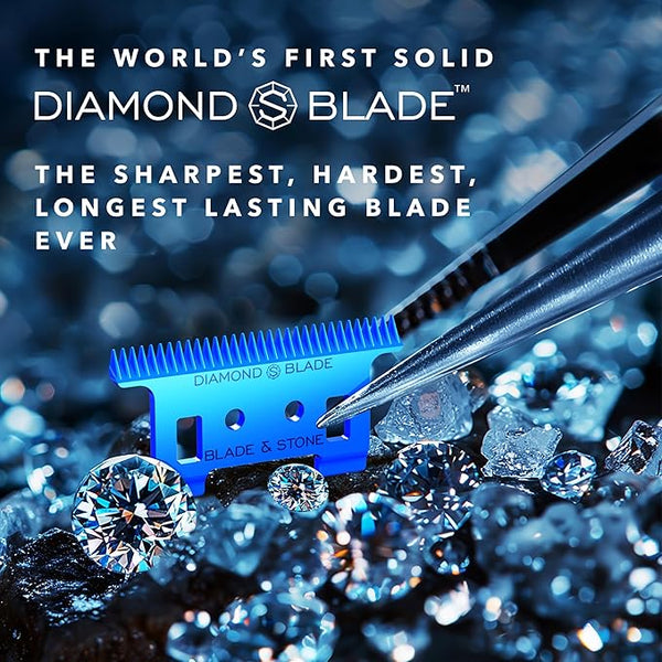 Blade & Stone's Diamond-S blades are made from 95% zirconia diamond, similar to lab-grown diamonds. They are designed to cut more hair with fewer passes, reducing skin irritation and redness.