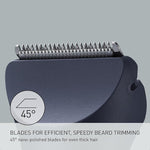 Enjoy quick, decisive cutting without having to take multiple passes. 45¡Æ edge stainless-steel blades ensure that more hair is captured with each pass than with conventional blades.