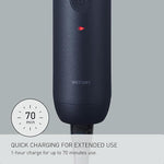 The Ni-Mh battery of the base unit (sold separately) gives you up to 70 minutes of trimming on a single charge.