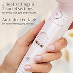 A wide, ion-infused airstream gently dries hair fast. Negative ions help smooth the hair cuticle to minimize frizz and enhance shine. Customizable settings allow for the right heat and speed combination to style any hair type and texture with soft, healthy-looking results.