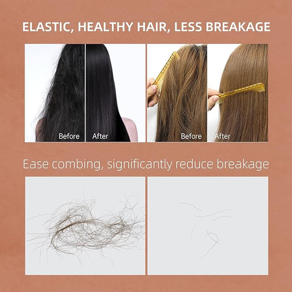 Cold-pressed oils like Argan, Rosehip, and Camellia oil address split ends, hydrate dry strands, prevent breakage, and enhance shine. Vitamins E, B5, and Hyaluronic Acid provide moisture, boost elasticity, and improve flexibility. Lactic Acid and Inulin probiotics balance the scalp¡¯s oil and water, promoting a healthier scalp environment.