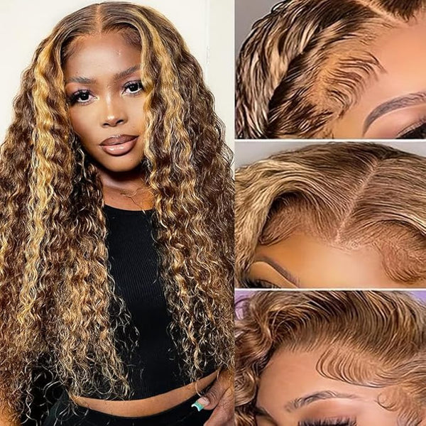 4x4 HD Highlight Ombre Deep Wave Lace Front Wig Human Hair Pre Plucked