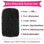 Afro Kinky Bulk Human Hair Length is Real, Measured When Straightened, The Afro Kinky Bulk Human Hair with The Same Thick Head and Tail.