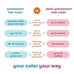 Unlike permanent color, demi-permanent hair color doesn't permanently alter or lighten hair, and washes out gradually. It uses a low-volume developer to penetrate the cuticle layer and doesn't reach deep into the hair's cortex like permanent color.