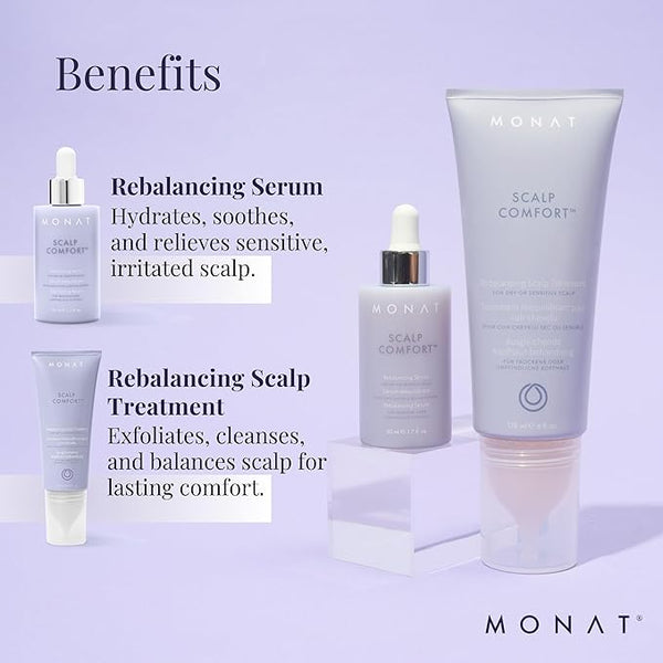 For optimal scalp health, pair the MONAT Scalp Comfort Rebalancing Serum with the MONAT Scalp Comfort Rebalancing Scalp Treatment. Together, they form a complete daily care routine for hydration, scalp balance, and lasting relief.