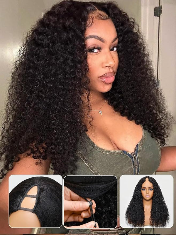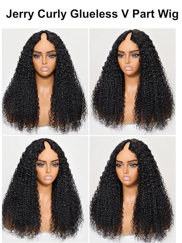 V Part Wig Human Hair Glueless Upgraded U Part Jerry Curly Wigs Wear and Go Wig