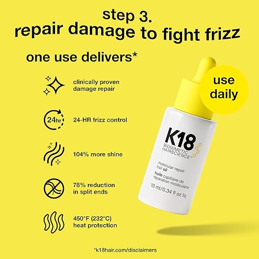 The Molecular Repair Hair Mask and oil work together to give you the reparative benefits of the K18PEPTIDE in both formulas.