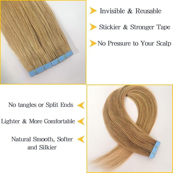 Caramel Blonde Tape in Human Hair Extensions 20Pcs Per Pack 30Grams 12 to 24Inch