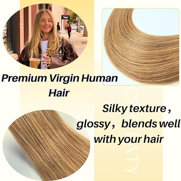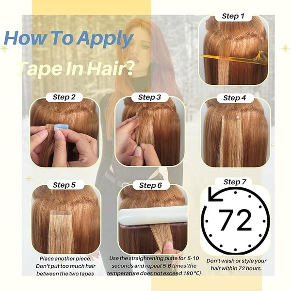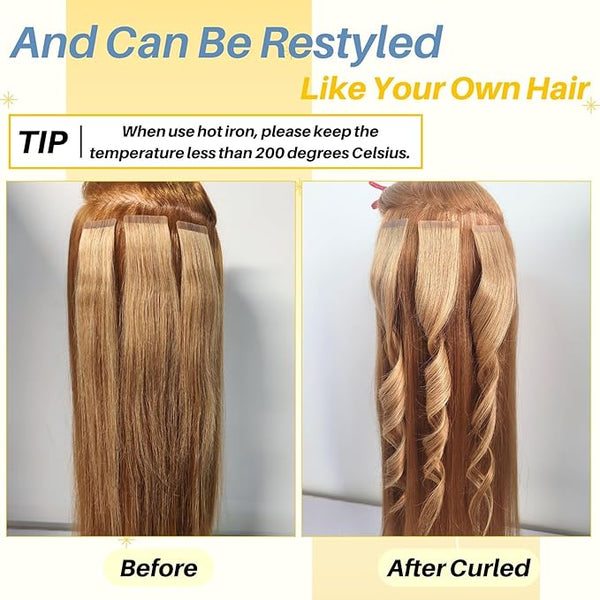 Product descriptionThe Color Guide of Tape in Hair ExtensionsCaramel Blonde Tape in Human Hair Extensions 20Pcs Per Pack 30Grams 12 to 24InchVideo TutorialsHow to wash your hair with extensions?Proper care...